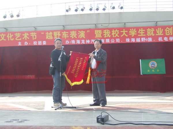 開幕式上龍神彭總發(fā)表慷慨激昂的講話,回顧了龍神公司與廣科院三年的良好合作,并表示將帶動所在行業(yè)和企業(yè)為大學(xué)生指引和提供更多的就業(yè)創(chuàng)業(yè)機(jī)會,共同發(fā)揚(yáng)越野精神、建設(shè)汽車文化,使之成為華南地區(qū)甚至全國范圍的高職學(xué)生精神文明和文化建設(shè)的亮點。隨后宣布了大學(xué)生就業(yè)創(chuàng)業(yè)基地建設(shè)和澳門四驅(qū)會成立啟動儀式,龍神公司和澳門四驅(qū)會分別向廣科院贈送錦旗,多采多藝的大學(xué)生文藝匯演給會場增添了眩麗的色彩,在越野酷車展示中,車主們自信的介紹著自己的愛車,車模們也對車主的酷車贊嘆不已!交流會上,大學(xué)生們爭先恐后與越野車主們交淡著汽車改裝的心得,從中更加深入的了解四驅(qū)越野車的獨特改裝性能,在校園里到處都充斥著關(guān)于越野車改裝的氛圍。