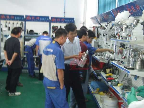 龍神講師向一汽馬自達的師傅介紹意大利威彩噴槍的優點