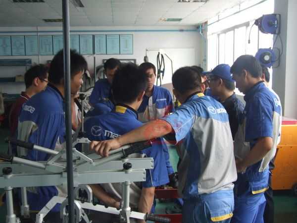 全國一汽馬自達各服務店都配備具有國際領先的鈑金維修工具設備,為了最大限度地利用這些高效率的工具設備,提升鈑金作業人員的技能及素養,并為馬自達系統的售后服務體系打造一支鈑金維修技術過硬的隊伍。經過一汽馬自達集團服務部統籌與組織,來自全國各地一汽馬自達服務店D0910班的第十期培訓學員,于2009年10月14日珠海接受鈑金技術提升培訓。