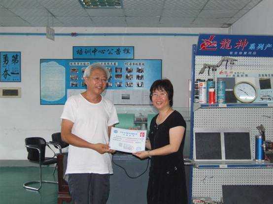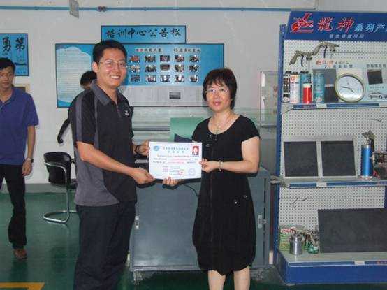 彭經(jīng)理頒發(fā)“汽車車身修復技能認證合格證書”