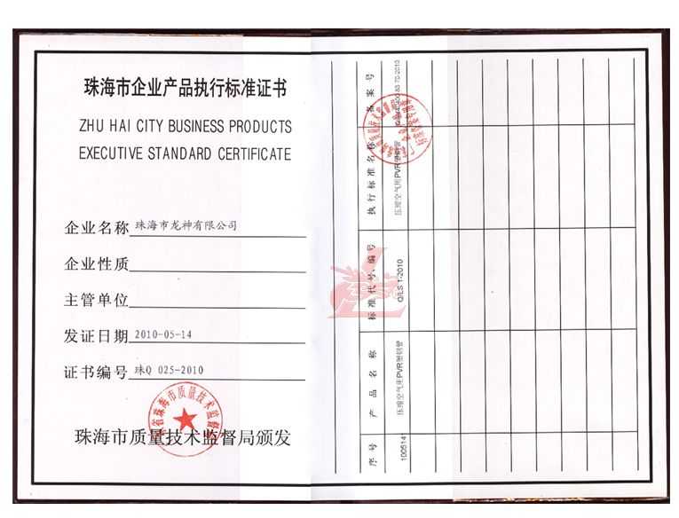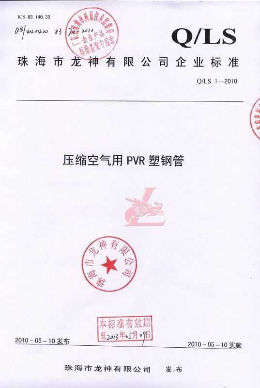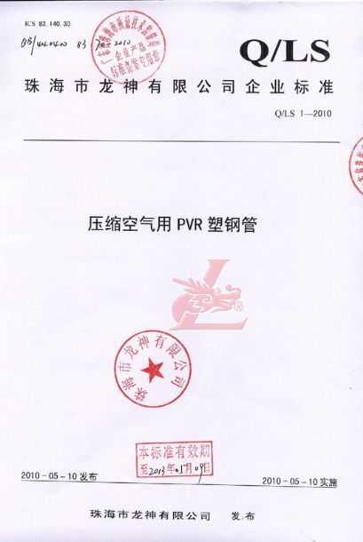 龍神壓縮空氣PVR塑鋼管成功申請(qǐng)企業(yè)執(zhí)行標(biāo)準(zhǔn) 2010年5月珠海市龍神有限公司“壓縮空氣PVR塑鋼管”得到珠海市質(zhì)量技術(shù)監(jiān)督局認(rèn)可,特此頒發(fā)“壓縮空氣PVR塑鋼管企業(yè)執(zhí)行標(biāo)準(zhǔn)”,龍神公司在嚴(yán)格執(zhí)行標(biāo)準(zhǔn)下,保證產(chǎn)品質(zhì)量。 2010-05-20 9863