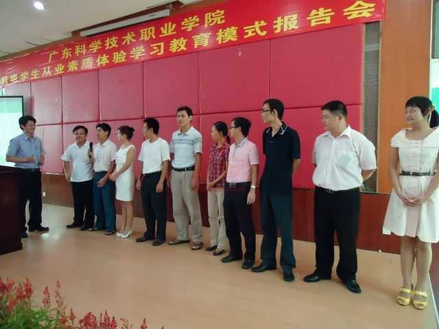龍神在“廣科院”舉辦第一屆大學生從業素質教育學習班--簡報 9月16日,珠海龍神素質教育部莊政憲生先在廣科院--機電學院舉辦了為期三天的大學生從業素質教育學習班。 在學習活動中,通過各種小活動有效的提高了學生們的學習熱情“在活動體驗在,體驗中反思,在反思中提升”是此次學習班主旨。 報告會莊老師主講 報告會現場 莊老師與學校老師領導一起交流 王老師帶領學生互相認識組建團隊 體驗活動之后的主題收獲 學生分享課程收獲與行動方案 學生們自己組織團隊 培養主人意識體驗活動---“空中接龍” 體驗主題打造卓越團隊的體驗活動---“終極任務” 李老師帶領學生針對體驗活動進行反思分享 王老師帶領學生針對體驗活動進行反思分享 珠海市龍神有限公司領導與莊老師、廣東科學技術職業學院領導、學生合照 2010-09-27 10326
