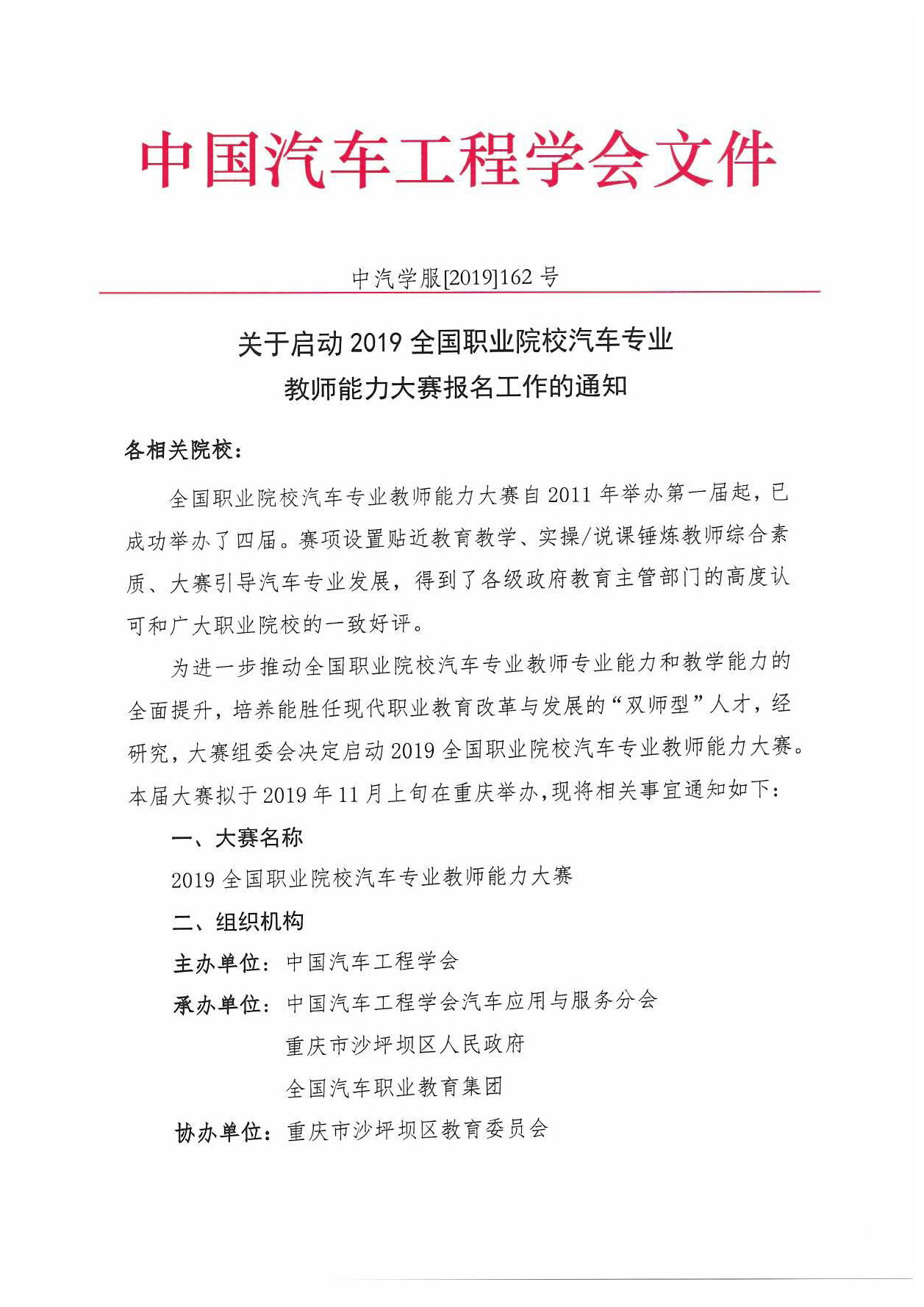 2019全國(guó)職業(yè)院校汽車專業(yè)教師能力大賽-鈑金賽項(xiàng)報(bào)名進(jìn)行時(shí) 2019-09-12 7135 由中國(guó)汽車工程學(xué)會(huì)主辦,中國(guó)汽車工程學(xué)會(huì)汽車應(yīng)用與服務(wù)分會(huì)、重慶市沙坪壩區(qū)人民政府、全國(guó)汽車職業(yè)教育集團(tuán)承辦,珠海市龍神有限公司協(xié)辦的“2019年全國(guó)職業(yè)院校汽車專業(yè)教師能力大賽--鈑金維修賽項(xiàng)”報(bào)名工作開(kāi)始了。。。