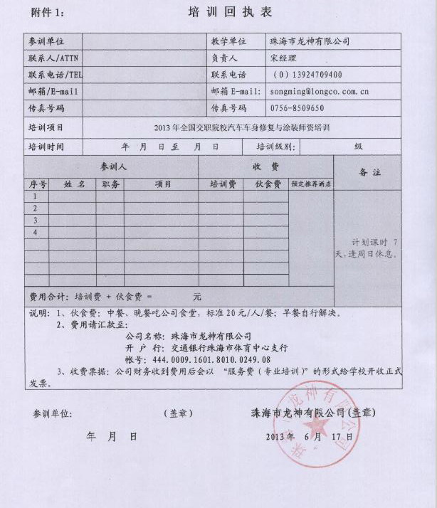 2、報名回執表需在培訓開始前5日,回傳至我司。