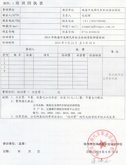 備注:1、參訓學校需填寫報名回執表,并蓋章。