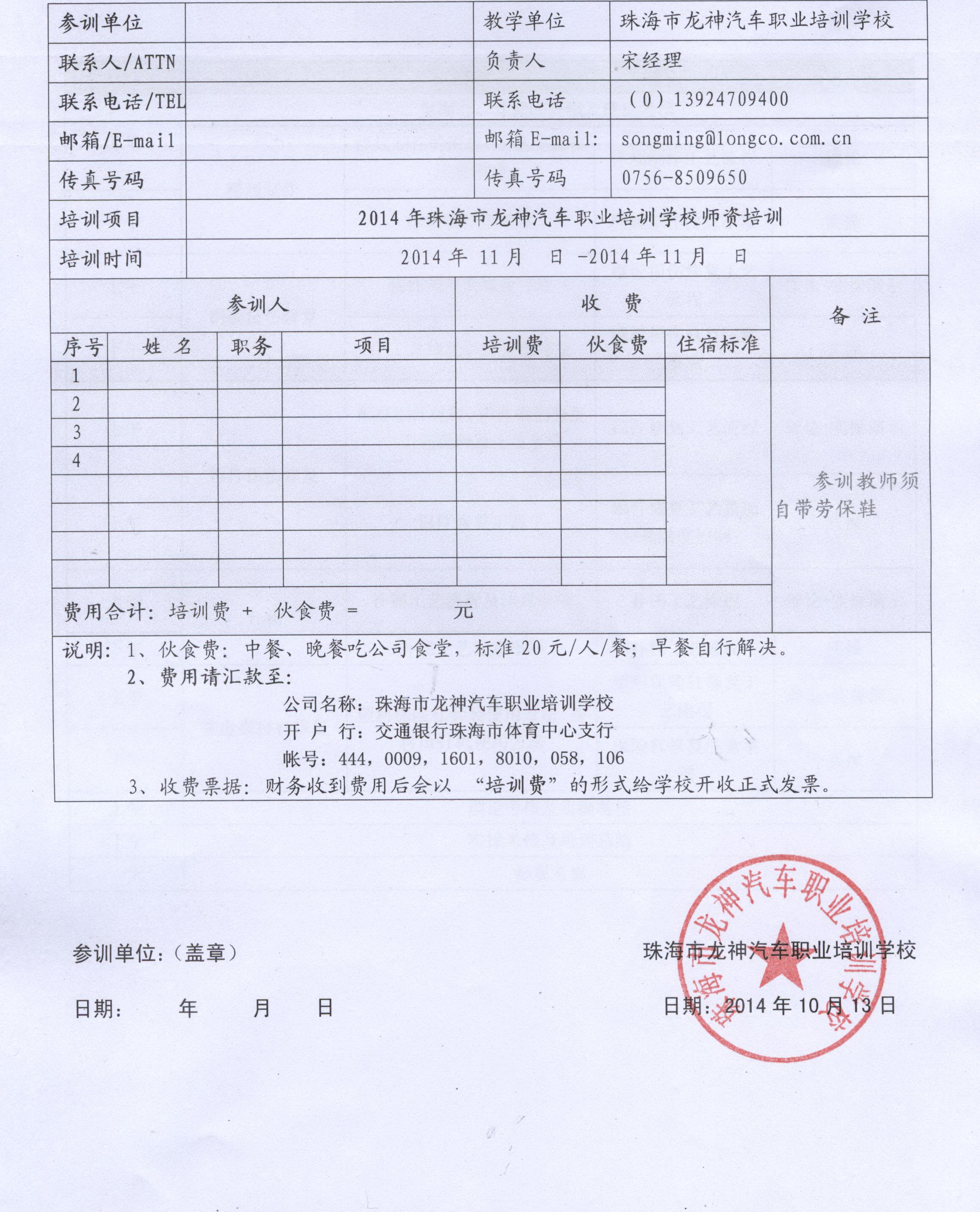 2、報名回執表需在培訓開始前5日,回傳至我司。