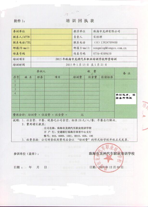 2、報名回執表需在培訓開始前5日,回傳至我司。
