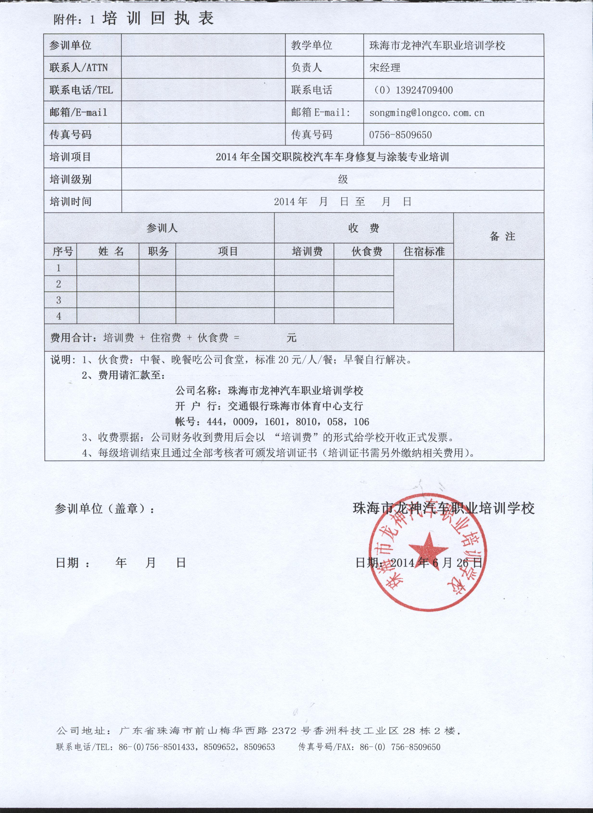 2、報(bào)名回執(zhí)表需在培訓(xùn)開始前5日,回傳至我司。