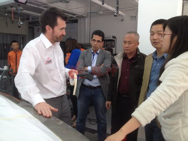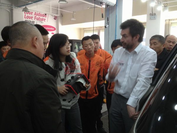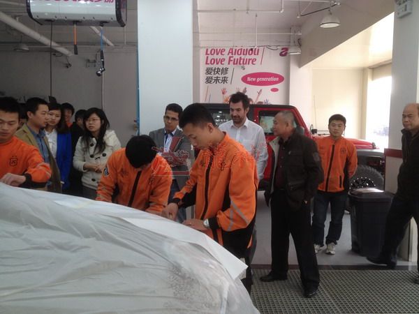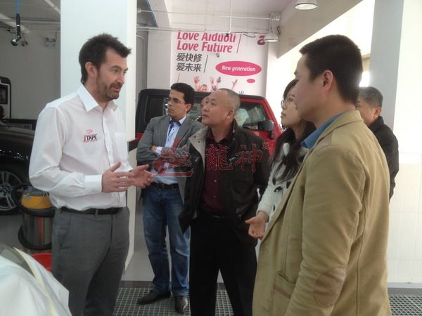 2013年特邀國外專家赴北京車爵士演示車縫泡膠條的使用 本司訊:2013年4月北京晴空萬里,龍神公司特邀英國專家一行五人,來到了北京車爵士進行汽車噴涂遮蔽技術交流。首先公司一行了解車爵士的汽車噴涂情況及詢問了使用的遮蔽工具情況。隨后英國專家針對在汽車噴漆時難噴涂的車門縫隙、玻璃死角等地方的專業遮蔽工具的演示。車縫泡沫膠:用于車身所有縫隙的遮蔽,有效隔離及遮蔽漆霧噴入車縫里。 2013-04-08 12073