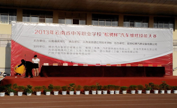 2013年4月27日,由云南省教育廳主辦,云南省曲靖應用技術學校承辦,昆明松騁汽修設備有限公司協辦,珠海龍神有限公司支持的“2013年云南省中等職業學校"松騁杯"汽車維修技能大賽”圓滿閉幕。