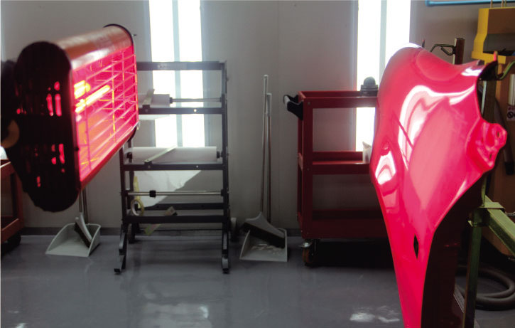 1. 首先用除油劑對需要修補的中涂層進行整體除油,待干燥后用粘塵布整體除塵。