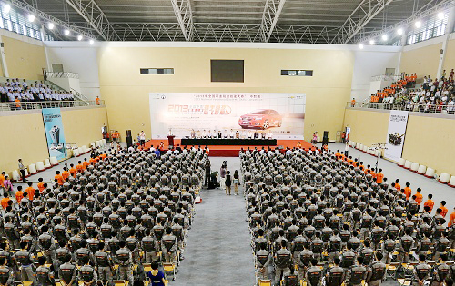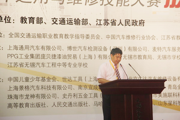 6月20日上午,2013年全國職業(yè)院校技能大賽中職組“雪佛蘭杯”汽車運用與維修技能大賽開幕式在無錫汽車工程中等專業(yè)學校體育館舉行。交通運輸部道路運輸司王水平副司長、江蘇省教育廳楊湘寧副廳長、無錫市人民政府華博雅副市長、大賽主贊助商——上海通用汽車有限公司黨委書記黃強出席開幕式并致辭。裁判員代表洪永楠、參賽選手代表何宇先后宣誓。大賽開幕式由國家教育部職成教司農村教育處劉杰處長主持。