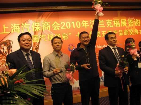 我司無塵干磨系統榮獲“中國汽保華彩”五佳產品稱號 2010年“中國汽保華彩”十大品類五佳產品頒獎典禮上,珠海市龍神有限公司的自研產品無塵干磨系統榮獲“五佳產品”稱號,這給龍神公司畫上了閃亮亮的一筆。 頒獎主持人致辭 我司蘇總上臺領獎(左二) 獲獎瞬間的喜悅 2010-12-14 10168