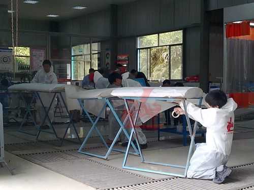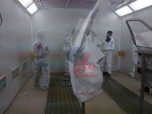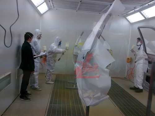 參賽選手統一著裝龍神贊助的噴漆防護進行規范化的車身噴涂比賽