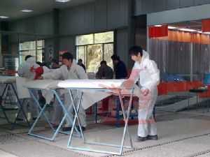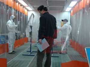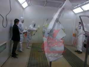 24日上午8點30分,比賽正式拉開戰幕。各代表隊選手統一著裝龍神贊助的鈑噴防護用品,全身心地投入到比賽中去。選手們訓練有素,工具準備、動手加工一氣呵成,扳手、噴槍,樣樣工具用起來得心應手,表現了參賽選手們良好的精神風貌、扎實的基本功。