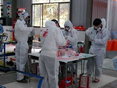 參賽選手統一著裝龍神贊助的噴漆防護進行規范化的調漆比賽